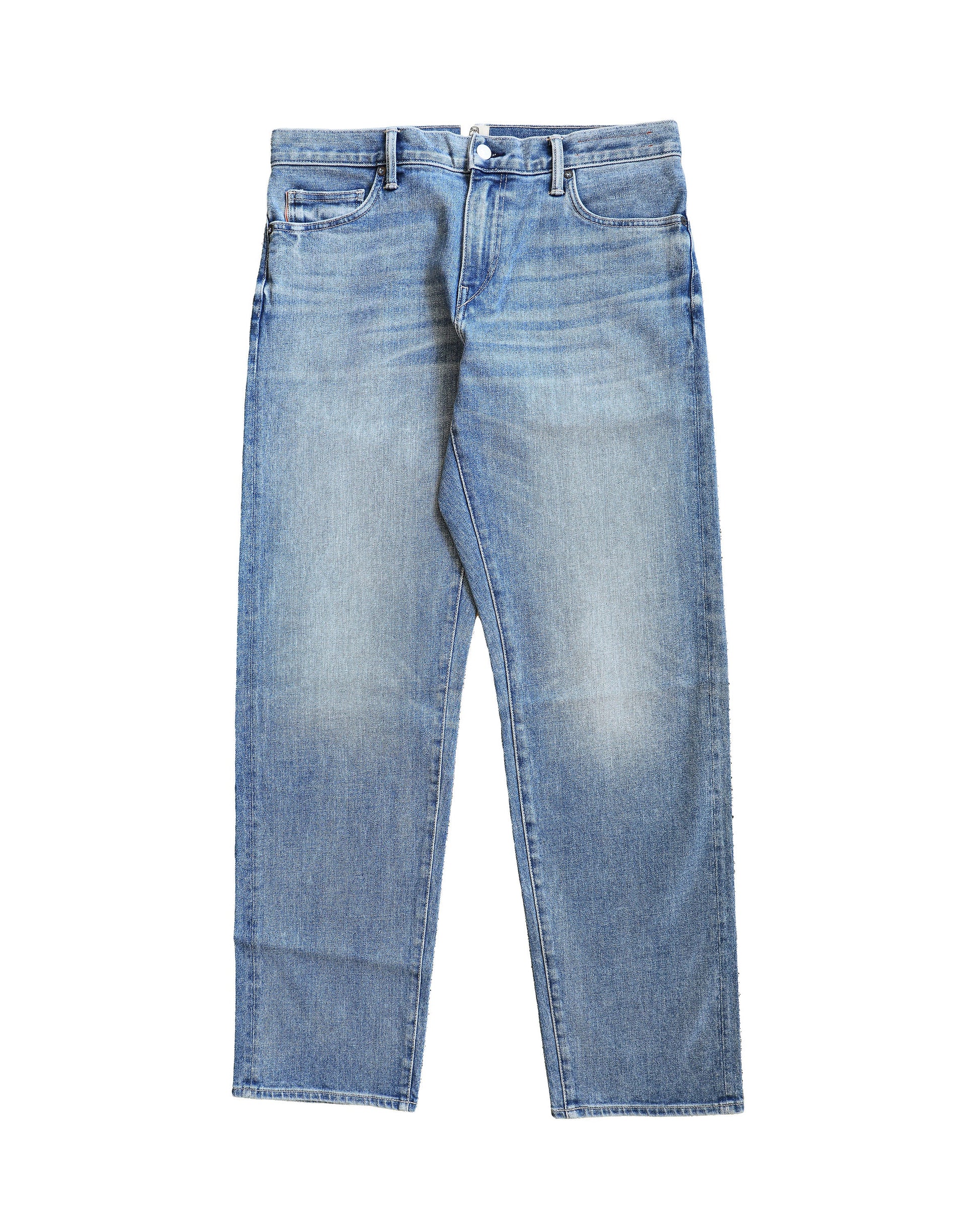 Classic Straight fit, medium rise. Vintage fade indigo Japanese 14oz 4-WAY STRETCH SELVEDGE ™, mid-rise, zip fly, a premium leather patch, and custom-branded hardware. Made in USA.